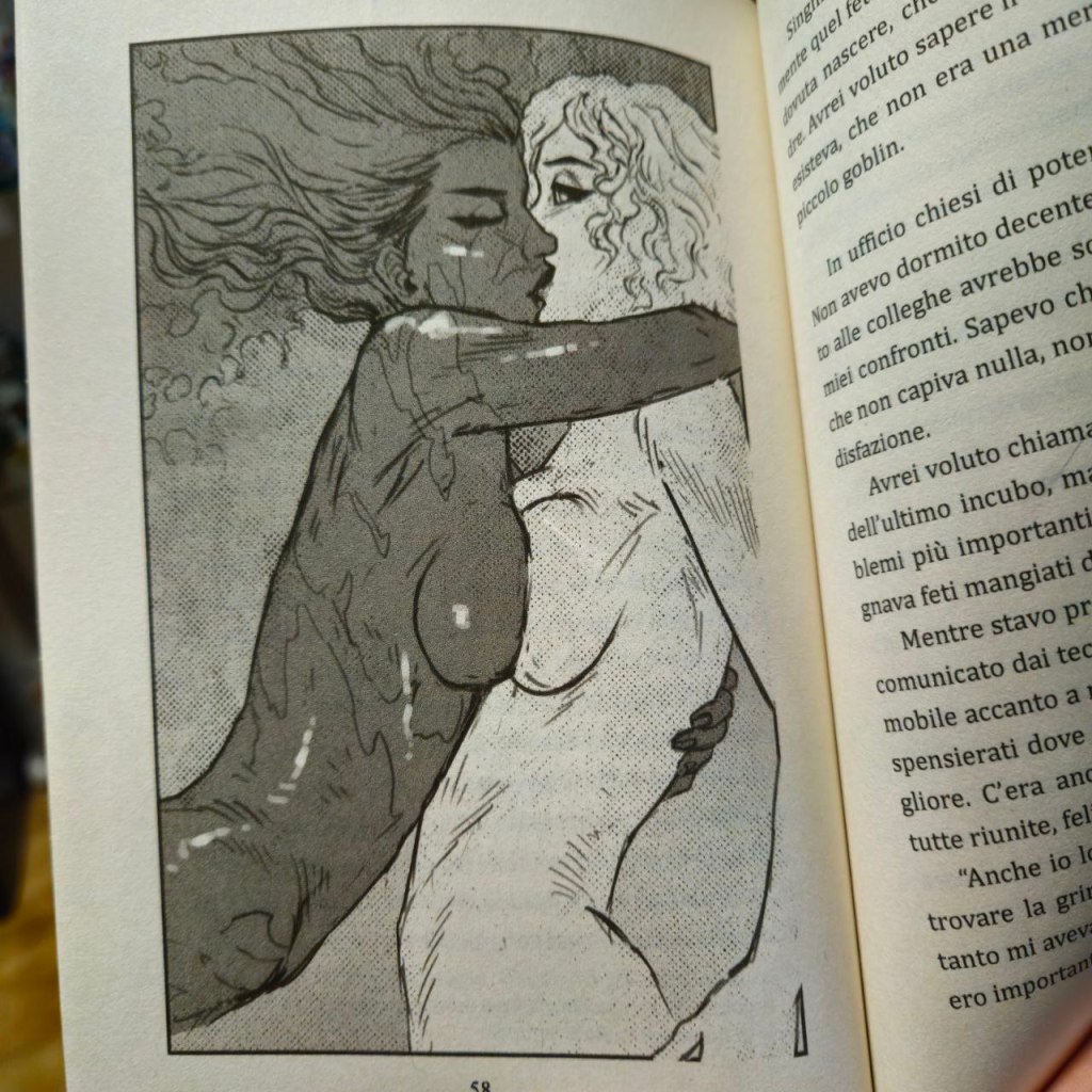 Qui entra in gioco anche una sensibilità che non avrei pensato di trovare, e che è stata tra le prime cose che mi hanno fatto capire che questo Porno-Horror non è affatto quello che sembra. L’erotismo e il sesso che troviamo tra queste pagine non è viscerale, non ci spinge a provare animalesca eccitazione o disgusto per quanto stiamo leggendo. È tutto perfettamente sensato, coerente con la storia e con il trauma della protagonista. Una sensibilità che si trasmette anche attraverso le splendide illustrazioni di Alessandro Amoruso, che arricchiscono il libro senza mai sfociare nell’eccessivo, nell’inappropriato.